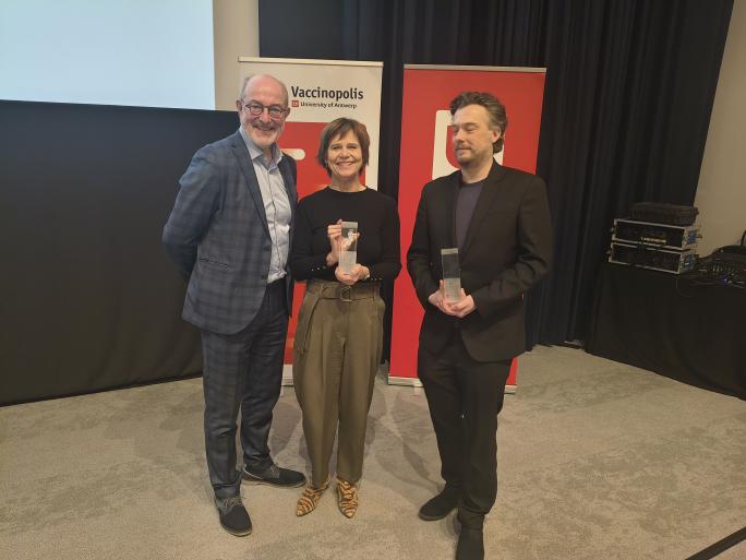 Het lijkt soms dweilen met de kraan open om alle desinformatie tegen te gaan, maar het blijft belangrijk om dat te blijven doen', zei Finoulst nadat ze het Valentijntje in ontvangst mocht nemen van prof. Pierre Van Damme, directeur van Vaccinopolis.